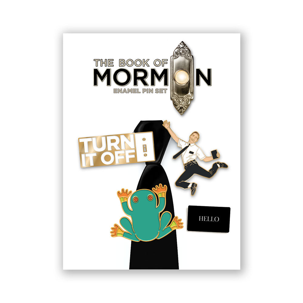 Show off your Mormon pride with this 3 enamel pin set. Featuring a jumping Mormon, the iconic frog, and the turn it off light switch.